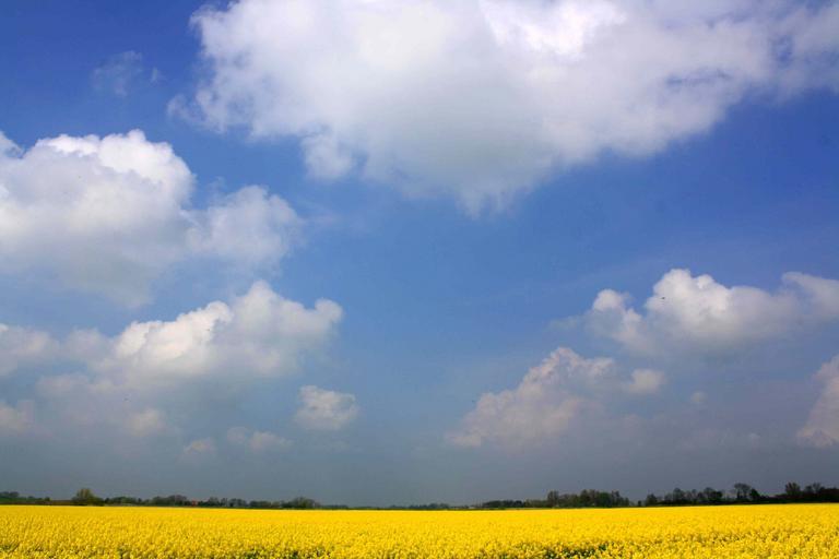 Keywords: oilseed rape rape blossom field wide clouds sky yellow agriculture oilseed rape plants field of rapeseeds blue nature crops landscape plant flowers summer grow