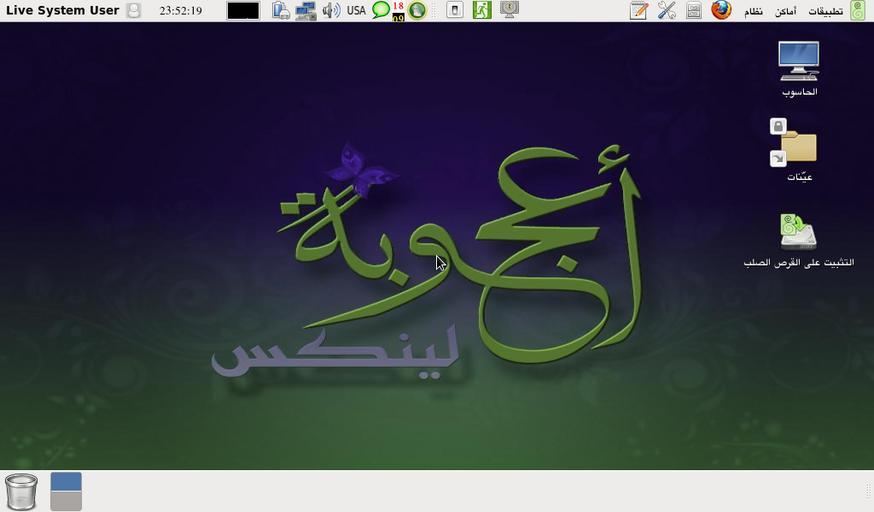 Keywords: Ojuba 4 live CD "Boot English" GNOME desktop in English and Arabic.png en Ojuba 4 Riyadh is based on Fedora 13 and the default GUI is GNOME Ojuba Linux is an Arabic Fedora-based distribution pre-installed with Arabic/Islamic packages like hijra and minbar and many patched packages to give better Arabic support like GNOME Terminal Ojuba Linux also comes with some third-party packages implementing multimedia support for proprietary formats and proprietary drivers Source http //en wikipedia org/wiki/Ojuba_Linux Ojuba 4 is a free mostly open source operating system whose main focus is to provide the best Arabic support Created a bootable USB drive using UNetbootin and ojuba-4-live-i686 iso live CD sv Ojuba 4 Riyadh är baserad på Fedora 13 och har stöd för det arabiska språket Skapade en bootbar USB-enhet med hjälp av UNetbootin och ojuba-4-live-i686 iso live CD 2011-08-18 own Christopher Forster cc-zero Uploaded with UploadWizard Screenshots of Fedora 13 Arabic screenshots of GNOME Arabic screenshots of Fedora |