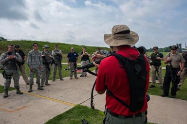 | Keywords: special weapons and tactics specialweaponsandtactics swat law enforcement lawenforcement okang oklahoma oklahoma air national guard oklahomaairnationalguard tactical air control party tacticalaircontrolparty tacp security forces securityforces community relations training scenarios weapons manipulation weaponsmanipulation malfunction firearms oklahoma city oklahomacity united states unitedstates usa outdoor Oklahoma County Sheriff’s Office Sgt. Jim Lilly, a staff training deputy, discusses proper form while transitioning between firearms at the Oklahoma County Sheriff's Office Training Center in Oklahoma City, May 26, 2016. Four Will Rogers Air National Guard Base Airmen joined local policing agencies for weapons training, May 24-26. The Oklahoma Country Sheriff's Office led the training to enhance communication and compatibility between various Oklahoma law enforcement groups. (Oklahoma Air National Guard photo by SrA Tyler Woodward/Released) Oklahoma County Sheriff’s Office Sgt. Jim Lilly, a staff training deputy, discusses proper form while transitioning between firearms at the Oklahoma County Sheriff's Office Training Center in Oklahoma City, May 26, 2016. Four Will Rogers Air National Guard Base Airmen joined local policing agencies for weapons training, May 24-26. The Oklahoma Country Sheriff's Office led the training to enhance communication and compatibility between various Oklahoma law enforcement groups. (Oklahoma Air National Guard photo by SrA Tyler Woodward/Released) |