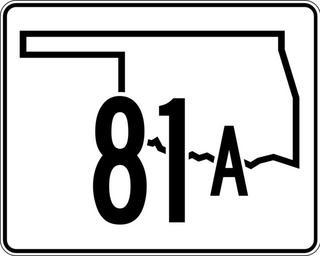 | Keywords: Oklahoma State Highway 81A.svg An Oklahoma State Highway 81A shield made to the specifications of the http //www okladot state ok us/traffic/traffic99/pdfs/t035e pdf sign detail Uses the http //www triskele com/fonts/index html Roadgeek 2005 fonts United States law does not permit the copyrighting of typeface designs and the fonts are meant to be copies of a U S Government-produced work anyway The outside border has a width of 1 1/16 in and a color of black so it shows up; in reality signs have no outside border own 2013-01-16 Fredddie Oklahoma State Highway shields 0081A |