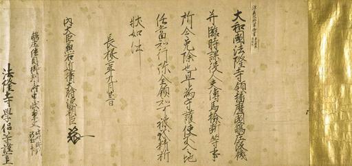 Keywords: Old Documents from Horyuji.jpg en Old Documents from Horyuji Horyuji Treasures N-17 Tokyo National Museum ja 古文書 義政文書等 http //webarchives tnm jp/imgsearch/show/C0041049 Muromachi-period author 1458 PD-old-100 Horyu-ji Treasury Documents in museums |