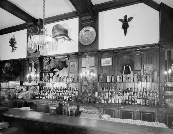 | Keywords: Old Ebbitt Grill Old F Street Location first floor looking west at bar 1967.jpg en Looking west at the main bar in the Barroom on the first floor of the Old Ebbitt Grill located at 1427 F Street NW Washington D C United States Old Ebbitt Grill was originally a restaurant which existed as part of the Ebbitt House hotel which was established in 1856 The hotel was located on the southeast corner of F Street and 14th Street in Washington D C The original hotel was razed in 1872 and a newer much larger hotel with a greatly expanded and much more luxurious dining room built The dining room was significantly renovated in 1910 Ebbitt House closed in 1925 and the restaurant's furnishings were purchased by Anders R Lofstrand Sr a local restauranteur and veteran bar owner The Old Ebbitt Grill restaurant was moved to 1427 F Street NW Lofstrand occupied all four floors of this existing building The restaurant passed into the hands of the Clyde's Restaurant Group in 1970 after a tax auction In 1977 the building was demolished to make way for the Metropolitan Square development However Old Ebbitt Grill re-established itself on the northwest corner of Metropolitan Square at 675 15th Street NW It remains in existence as of 2012 and is the oldest bar and restaurant in the city http //www loc gov/pictures/item/dc0193/ Historic American Buildings Survey Prints and Photographs Division Library of Congress 1967 PD-USGov-Interior-HABS Old Ebbitt Grill 1926 location |