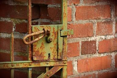 Keywords: old gate castle rusty input rusted iron door door handle wall brick iron closed
