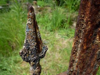Keywords: old iron rusty metal corrosion decay weathering brown fence garden fence