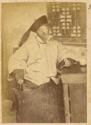 | Keywords: Old Manchu Gentleman in Padded Silk Jacket and Gown with a Jade Archer’s Ring (Banzhi) on His Left Thumb. China, 1874-75 WDL4137.png Artwork ru Боя ский Адольф- иколай Э азмович fr Boiarskii Adolf-Nikolay Erazmovich en Boiarskii Adolf-Nikolay Erazmovich zh 阿道夫 伊拉莫维奇 鲍 尔斯基 pt Boiarskii Adolf-Nikolay Erazmovich ar أدولف-نيكولاي إرازموفيتش بويارسكي es Boiarskii Adolf-Nikolay Erazmovich ru Пожилой маньчжу в шелковом подбитом кафтане и мужском халате на большой палец его левой уки надето неф итовое кольцо лучника баньчжи Китай 1874 1875 гг fr Vieil aristocrate mandchou vêtu d'une toge et d'une veste matelassée en soie et portant une bague d'archer en jade banzhi au pouce gauche Chine 1874-1875 en Old Manchu Gentleman in Padded Silk Jacket and Gown with a Jade Archer s Ring Banzhi on His Left Thumb China 1874-75 zh 位满族 ,身 夹里 绸外套和罩袍,左手拇指上戴 扳指 中国,1874-1875 年 pt Um velho senhor manchuriano usando uma jaqueta almofadada de seda e uma túnica com um anel de arqueiro de jade Banzhi em seu polegar esquerdo China 1874-1875 ar أحد سادة المانشو كبار السن يرتدي معطفاً ورداءً حريرياً مبطناً وخاتم رامي السهام من اليشم بانجي بإبهام يده الأيسر الصين 1874-1875 ru В 1874 1875 гг оссийское п авительство нап авило в Китай учено-то говую экспедицию с целью поиска новых сухопутных ма ш утов к китайскому ынку оценок возможностей для более активной то говли и для асположений консульств и фаб ик а также сбо а инфо мации о Дунганском восстании бушевавшем в то в емя в западных айонах Китая Экспедиция уководителем кото ой был полковник Гене ального штаба Ю А Сосновский состояла из девяти человек капитана атусовского топог афа докто а Павла Яковлевича Пясецкого научного сот удника пе еводчиков с усского и китайского языков т оих казаков и фотог афа экспедиции Адольфа Э азмовича Боя ского Экспедиция отп авилась из Санкт-Пете бу га в Шанхай че ез Улан-Бато онголия Пекин и Тяньцзинь и затем последовала по ма ш уту вдоль еки Янцзы по Великому шелковому пути п оходя че ез оазис Хами к озе у Зайсан об атно в Россию Боя ский сделал около 200 снимков кото ые легли в основу уникальных мате иалов для изучения Китая того в емени Большая часть фотог афий вошла в этот альбом кото ый позже стал частью коллекции Те езы К истины а ии соб анной импе ато ом Б азилии Пед у II и пе еданной им ациональной библиотеке Б азилии <br>Китайцы; Память ми а; По т етные фотог афии fr En 1874-1875 le gouvernement russe organisa une mission commerciale et de recherche en Chine Cette mission avait pour objectif de trouver de nouvelles routes terrestres vers le marché chinois d'étudier les perspectives d'une expansion commerciale de rechercher des sites pour l'installation de consulats et d'usines et de recueillir des informations sur la révolte de Dungan qui faisait alors rage dans les provinces de la Chine occidentale Composée de 9 hommes et dirigée par le lieutenant-colonel Iulian A Sosnovskii de l'état-major général de l'armée cette mission comprenait également un topographe le capitaine Matusovskii un responsable scientifique le Dr Pavel Iakovlevich Piasetskii des interprètes chinois et russes trois sous-officiers cosaques et le photographe de la mission Adolf Erazmovich Boiarskii La mission se déroula de Saint-Pétersbourg à Shanghai en passant par Oulan-Bator Mongolie Pékin et Tianjin Elle longea ensuite le fleuve Yangtsé et suivit la grande Route de la soie à travers l'oasis Hami et jusqu'au lac Zaysan de retour en Russie Adolf Erazmovich Boiarskii prit quelque 200 photographies ce qui constitue une source unique pour l'étude de la Chine de cette période La plupart des photographies prises durant cette mission apparaissent dans cet album lequel rejoignit par la suite la collection Thereza Christina Maria rassemblée par l'empereur Pierre II du Brésil qui en fit don à la Bibliothèque nationale du Brésil <br>Chinois; Mémoire du monde; Portraits photographiques en In 1874-75 the Russian government sent a research and trading mission to China to seek out new overland routes to the Chinese market report on prospects for increased commerce and locations for consulates and factories and gather information about the Dungan Revolt then raging in parts of western China Led by Lieutenant Colonel Iulian A Sosnovskii of the army General Staff the nine-man mission included a topographer Captain Matusovskii; a scientific officer Dr Pavel Iakovlevich Piasetskii; Chinese and Russian interpreters; three non-commissioned Cossack soldiers; and the mission photographer Adolf Erazmovich Boiarskii The mission proceeded from Saint Petersburg to Shanghai via Ulan Bator Mongolia Beijing and Tianjin and then followed a route along the Yangtze River alo