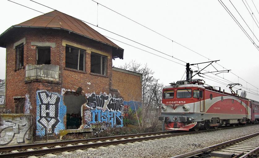 Keywords: old railway station abandoned ruins train locomotive brick wall graffiti the passage of time bucharest romania