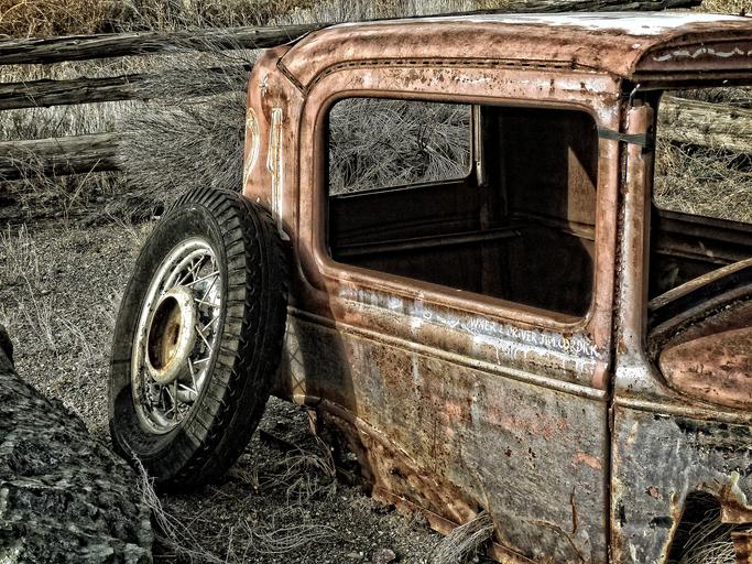 Keywords: old rusty car automobile classic car vintage vintage automobiles vehicle tire transportation auto skeleton