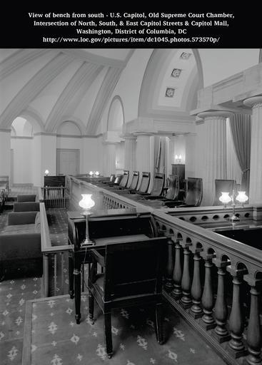 Keywords: blackandwhite hall indoor monochrome black and white View of bench from south - U.S. Capitol, Old Supreme Court Chamber, Intersection of North, South, & East Capitol Streets & Capitol Mall, Washington, District of Columbia, DC www.loc.gov/pictures/item/dc1045.photos.573570p/ View of bench from south - U.S. Capitol, Old Supreme Court Chamber, Intersection of North, South, & East Capitol Streets & Capitol Mall, Washington, District of Columbia, DC www.loc.gov/pictures/item/dc1045.photos.573570p/ |