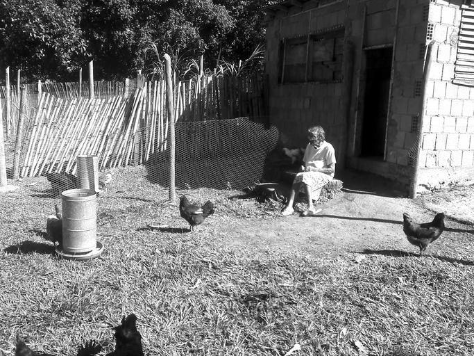 Keywords: old woman woman female grandmother grandma sun old family age farm farmer chicken animals cock poultry