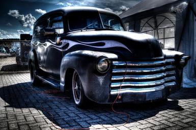Keywords: oldtimer car classic car old vintage car black luxury oldschool vintage flames grill workshop garage repair