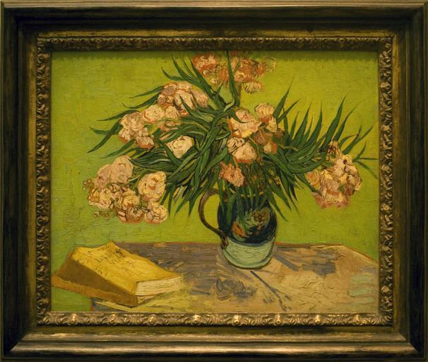 | Keywords: Oleanders - 1888.jpg Artwork Creator Vincent van Gogh Still Life Vase with Oleanders and Books Oil on canvas cm 60 3 73 6 NYC Van Gogh catalogues 593 1566 met Painted at Arles; Provenance provenanceEvent gift Mr and Mrs John L Loeb 1962 Szilas 1888-08 PD-old-100 Other versions <gallery> File WLA metmuseum Oleanders by Vincent van Gogh jpg File Van Gogh - Vase mit Oleander und Bücher jpeg </gallery> DEFAULTSORT Van Gogh 1888-08 Arles - Shoes F_593 JH_1566 jpg Still Life Vase with Oleanders and Books |