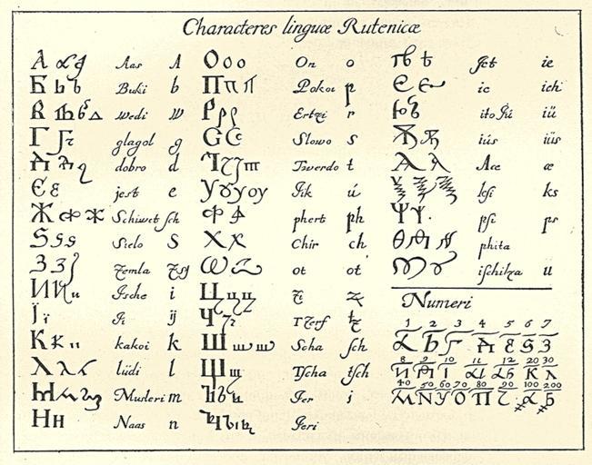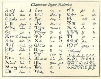 Keywords: Olearius russian letters.gif en Russian alphabet ru Русский алфавит Characteres linguae Rutenicae Описание путешествия в осковию и че ез осковию в Пе сию и об атно http //www booksite ru/enciklopedia/album/2 htm Адам Олеа ий / Adam Olearius middle of the 17th century PD-old Adam Olearius Russian alphabet all