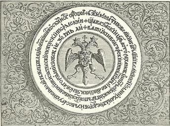 Keywords: Olearius seal MF.gif ru Печать ихаила Федо овича Описание путешествия в осковию и че ез осковию в Пе сию и об атно http //www booksite ru/enciklopedia/album/2 htm Адам Олеа ий / Adam Olearius middle of 17 cent PD-old Adam Olearius Coats of arms of the Tsardom of Russia Seals of Michael I of Russia