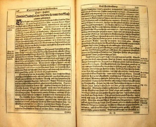 | Keywords: OleariusManuscript.jpg  ru Глава из книги Адама Олеа ия «Описание путешествия голштинского посольства в  осковию и Пе сию» de Doppelseite aus Adam Olearius Moskowitische und persische Reise 1647 http //museum rosneft ru/past/chrono/year/1639/ Creator Adam Olearius 1639 comment 1639 is unlikely since first edition came out in 1647 Left page seems to be identical with one page in enlarged 1656 edition viz http //diglib hab de/wdb php dir drucke/263-2-hist-2f pointer 427 PD-old Adam Olearius |