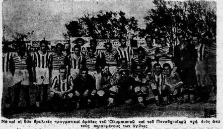 | Keywords: Olympiakos Panathinaikos.jpg en Olympiakos and Panathinaikos players before a 1935 or earlier match el Παίκτες Ολυμ ιακού και Παναθηναϊκού ριν α ό μεταξύ τους αναμέτρηση το 1935 ή νωρίτερα newspaper «ΑΘΛΗΤΙΚΗ ΦΩ Η» http //srv-web1 parliament gr/display_doc asp item 43497 seg 10592 digital page 535 author published 15 11 1935 photo taked not after 30 06 1935 previous Olympiakos-Panathinaikos match before the one announced in the newspaper Παρουσίαση αθλητικού γεγονότος για εμ λουτισμό καταρχάς του λήμματος τέρμ ι των αιωνίων αντι άλων Ελλάδας οδόσφαιρο της ελληνικής Βίκι Πέραν της ιστορικότητάς της η φωτογραφία καταδεικνύει τη διαφορά νοοτρο ίας εντός και εκτός αγωνιστικών χώρων της τότε ερασιτεχνικής ε οχής α ό τη σημερινή ε αγγελματική Anonymous-EU Uncategorized 2014 November 22 |