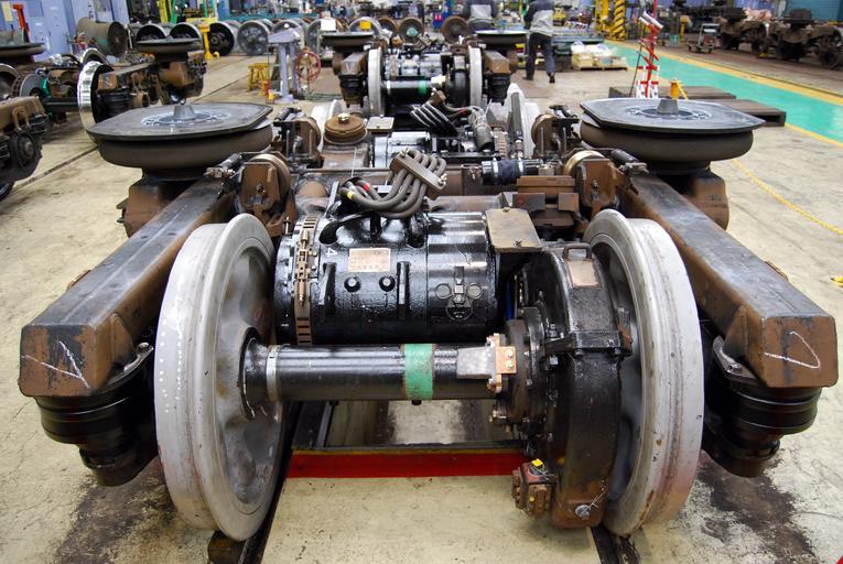 Keywords: Omiya TDheikou garutan.JPG ja 中空軸平行カル ン駆動方式の台車(おおみやふれあい鉄道フェアーでの工場開放にて撮影) 投稿 が撮影 toshinori baba 2010-05-22 Bogie trucks of JR East