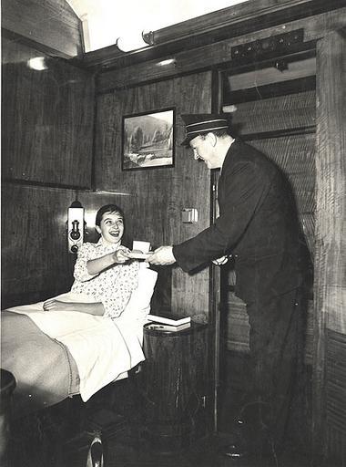 Keywords: archives state records nsw staterecordsnsw newsouthwales blackandwhite trains carriages sleeping car sleepingcar people passengers staff women uniforms pyjamas tea service commonsbest black and white Interior of railway carriage showing KAM suite in a sleeping car on the 'Melbourne Express' Dated: 06/06/1951 Digital ID: a014_a014000886 Rights: www.records.nsw.gov.au/about-us/rights-and-permissions We'd love to hear from you if you use our photos. Many other photos in our collection are available to view and browse on our website using Photo Investigator. Interior of railway carriage showing KAM suite in a sleeping car on the 'Melbourne Express' Dated: 06/06/1951 Digital ID: a014_a014000886 Rights: www.records.nsw.gov.au/about-us/rights-and-permissions We'd love to hear from you if you use our photos. Many other photos in our collection are available to view and browse on our website using Photo Investigator.