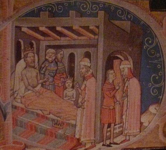 Keywords: Ondra1 postel.jpg en Andrew I of Hungary cs Ondřej I na smrtelné posteli own Acoma century 14 PD-old Chronicon Pictum Andrew I of Hungary Béla I of Hungary