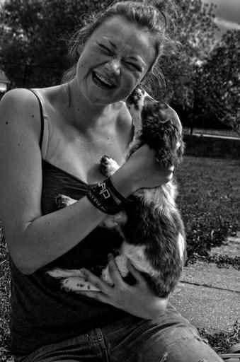 Keywords: one person girl animal pet mammal dog puppy black and white