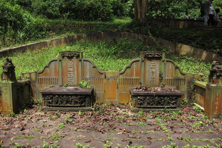 | Keywords: ong sam leong tomb boon tat wife gwee soon neo bukit brown singapore public domain publicdomain outdoor Son of Ong Sam Leong Died July 5, 1941 Buried with wife Gwee Soon Neo From Singapore Street Names: Singapore-born businessman and elder son of Ong Sam Leong, Ong Boon Tat was the proprietor of the New World amusement park in Jalan Besar. Boon Tat extended his father's business and was the owner of brickworks, sawmills and rubber estates. In the 1920s, he was described as "one of the group of young Straits-Chinese who are taking a practical interest in public affairs, having realised the duties of citizenship which devolve more especially on the men of education and standing in our community." Originally called Japan Street, the road named after him was the first to be renamed by the Municipal Commissioners in 1945 after the Japanese Occupation. Son of Ong Sam Leong Died July 5, 1941 Buried with wife Gwee Soon Neo From Singapore Street Names: Singapore-born businessman and elder son of Ong Sam Leong, Ong Boon Tat was the proprietor of the New World amusement park in Jalan Besar. Boon Tat extended his father's business and was the owner of brickworks, sawmills and rubber estates. In the 1920s, he was described as "one of the group of young Straits-Chinese who are taking a practical interest in public affairs, having realised the duties of citizenship which devolve more especially on the men of education and standing in our community." Originally called Japan Street, the road named after him was the first to be renamed by the Municipal Commissioners in 1945 after the Japanese Occupation. |