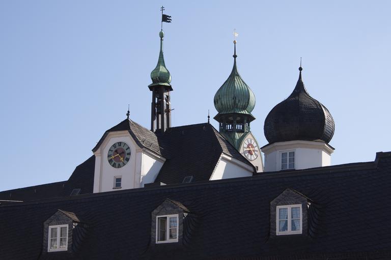 Keywords: onion domes tower onion helm roof building architecture spire clock tower dormer windows black blue back light