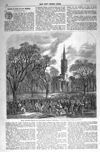 | Keywords: blackandwhite monochrome photo border black and white Appeared in FRANK LESLIE'S ILLUSTRIERTE ZEITUNG (German version of FRANK LESLIE'S ILLUSTRATED NEWSPAPER), March 5, 1864. German text appears on reverse side of print. Print shows Negro volunteers passing the Broad Street Episcopal Church in New Bern. Crowds line the street, and the onlookers are celebrating. Original Prints, State Archives of North Carolina, Raleigh, NC. Appeared in FRANK LESLIE'S ILLUSTRIERTE ZEITUNG (German version of FRANK LESLIE'S ILLUSTRATED NEWSPAPER), March 5, 1864. German text appears on reverse side of print. Print shows Negro volunteers passing the Broad Street Episcopal Church in New Bern. Crowds line the street, and the onlookers are celebrating. Original Prints, State Archives of North Carolina, Raleigh, NC. |