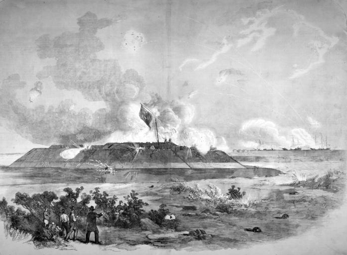 MAKE A MEME View Large Image Das Bombardement von Fort Hatteras, Nord Carolina durch die Der. Stanten Flotte unter Commodore Stringham, am 29 August 1861. (The Bombardment of Fort Hatteras by the Federal Fleet) 1861. Frank Leslie’s Illustrated Newspaper, September 7, ...