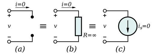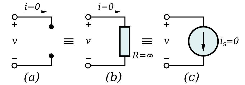 | Keywords: Open Circuit Equivalents.svg Diagram showing an open circuit as a zero-valued current source an infinite-valued resistor or a wire break Own drawing done in Inkscpae 0 45 10/02/07 inductiveload image Short_Circuit_Equivalents svg The same for a short circuit Resistive circuit analysis Resistor schemas |