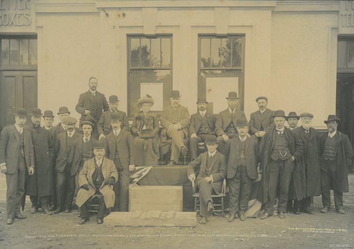 | Keywords: green island greenisland historic dunedin outdoor DCC Archives, Green Island Borough Council Series, 22/7. Photographer: AW Bathgate . Back row from left: Councillor E Reeve, Cr C Blackwood, Mrs J Lindsay (Mayoress), Hon T McKenzie, J Lindsay (Mayor), W Geddes (late Mayor), T Thomson (Town Clerk). Second Row: R Scott (Contractor for Water Works), FW Furkitt (Engineer Public Works Dept), another Public Works engineer, Cr R Waters, TJ Williams (Engineers for Water Works), Cr A Kane, Cr GV Price, Cr W Wynn (from Public Works Dept), Rev J Kilpatrick, Mr Murphy, resident, Cr A Crimp. Seated left Cr J jenkins, Cr H Christie. DCC Archives, Green Island Borough Council Series, 22/7. Photographer: AW Bathgate . Back row from left: Councillor E Reeve, Cr C Blackwood, Mrs J Lindsay (Mayoress), Hon T McKenzie, J Lindsay (Mayor), W Geddes (late Mayor), T Thomson (Town Clerk). Second Row: R Scott (Contractor for Water Works), FW Furkitt (Engineer Public Works Dept), another Public Works engineer, Cr R Waters, TJ Williams (Engineers for Water Works), Cr A Kane, Cr GV Price, Cr W Wynn (from Public Works Dept), Rev J Kilpatrick, Mr Murphy, resident, Cr A Crimp. Seated left Cr J jenkins, Cr H Christie. |