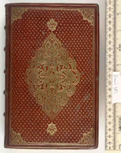 Keywords: Opera omnia - Upper cover (Davis381).jpg Style Centre and cornerpiece Semis background of small tools; Caption Upper cover; Colour Red; Edge Unspecified exhibition history Decorative Technique Tooled in gold; Cover Material Goatskin includes morocco turkey etc May be by Claude Picques c 1550 Paris centre and cornerpiece object history Text 1518/19; Venice; Unspecified object type Cc-zero place of creation Binding France place of discovery M M Foot The Henry Davis Gift vol III p 108-9 For a similar corner tool and central panel-stamp see J R Abbey Catalogue of valuable printed books and fine bindings 21-23 June 1965 p 213 215 n 552 on Plautus Comoediae Basle J Hervgius 1538 - C 20 c 15 C 46 c 14 C 48 c 2 Davis 394; for similar hanging motifs Davis 385 An identical cover appears in Précieux livres anciens Lundi 13 mai 1985 n 159 on Plato Le premier second et dixième livre de Justice ou de la République de Platon Paris Sébastien Nyvelle 1555 From the Colbert Ballesden Renouard Vernon and Holford collections British Library image http //www bl uk/catalogues/bookbindings/LargeImage aspx RecordId 020-000003978 ImageId ImageId 41594 Copyright BL Opera omnia Uploaded with GWToolset Opera omnia - Upper cover Davis381 http //www webarchive org uk/bldatasets/bindings/6109_4 jpg Bookbinding 16th-century bookbinding British Library Bookbindings |