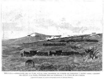 View Original:Operaciones_del_3_de_noviembre_de_1893_para_abastecer_los_fuertes_de_Cabrerizas_y_Rostro_Gordo,_regreso_del_convoy_a_la_plaza,_protegido_por_las_guerrillas_y_el_fuego_de_los_fuertes.jpg (892x677)