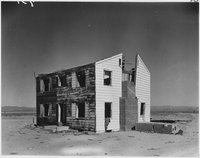 | Keywords: (Operation Cue) - Two-story wood frame house at 5,500 feet after the blast - NARA - 541788.tif Scope and content General notes 541788 Local identifier 304-OC-737 Federal Civil Defense Administration Operations Group 1951 - 1958 Still Picture Records Section Special Media Archives Services Division NWCS-S National Archives at College Park 8601 Adelphi Road College Park MD 20740-6001 1955-05-05 Record group Record Group 304 Records of the Office of Civil and Defense Mobilization 1947 - 1962 Record group ARC 620 Photographs of Operation Cue compiled 05/05/1955 - 05/05/1955 Series ARC 541784 File unit File unit ARC Variant control numbers NAIL Control Number NWDNS-304-OC-737 yes Other versions <gallery>File Operation_Cue _-_Two-story_wood_frame_house_at_5 500_feet_ from_blast_site _-_NARA_-_541785 tif</gallery> NARA-cooperation PD-USGov Operation Cue |