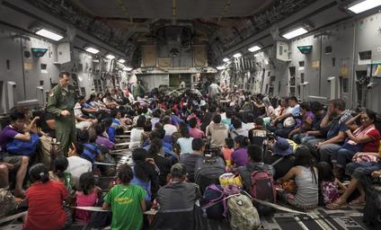Keywords: Operation Damayan (10895828864).jpg Displaced Filipino and other international personnel prepare for takeoff inside a C-17 Globemaster III with the 535th Air Lift Squadron out of Hickam Field Honolulu HI for transport to Manila from Tacloban Air Field Nov 15 The supply drop-off and personnel loading was the first use of the C-17 during Operation Damayan able to carry significantly more supplies and displaced persons than the C-130 Hercules aircraft currently being utilized To date the multi-national force has delivered more than 623 000 pounds of relief aid The 3rd MEB is currently supporting the Armed Forces of the Philippines in providing humanitarian aid and disaster relief to areas affected by Super Typhoon Haiyan/Yolanda U S Marine Corps photo by Sgt Jonathan Wright/Released https //www flickr com/photos/marine_corps/10895828864/ Operation Damayan 2013-11-15 19 02 https //www flickr com/people/40927340 N03 Marines from Arlington VA United States PD-USGov United States Marine Corps Official Page https //flickr com/photos/40927340 N03/10895828864 2016-09-03 22 11 40 United States Government Work Uncategorized 2016 September 27 |