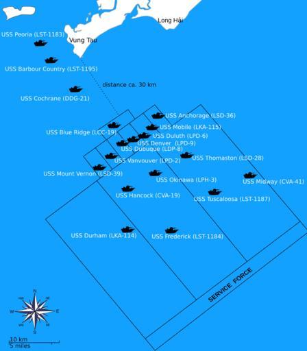 | Keywords: Operation Frequent Wind ship disposition 1975 - Recreated map.svg en Map showing the disposition of U S Navy ships at the start of operation Fequent Wind in April 1975 The command ship USS Blue Ridge LCC-19 was located approximately 28 km from Vung Tau Vietnam at 1500 hrs on 29 April 1975 1975-04-29 Official U S Marine Corps photograph A150855 in U S Marines in Vietnam The War that Would not End 1973-1975 http //www marines mil/Portals/59/Publications/U S 20Marines 20in 20Vietnam 20The 20war 20that 20would 20not 20end 201971-1973 20PCN 2019000311200_7 pdf part 8 p 186 Operation Frequent Wind ship disposition 1975 JPG 50 Fleet deployment for Operation Frequent Wind jpg 50 derivative work Jailhfr 1975-04-29 USMC cc-zero Operation Frequent Wind Uploaded with UploadWizard Military maps |