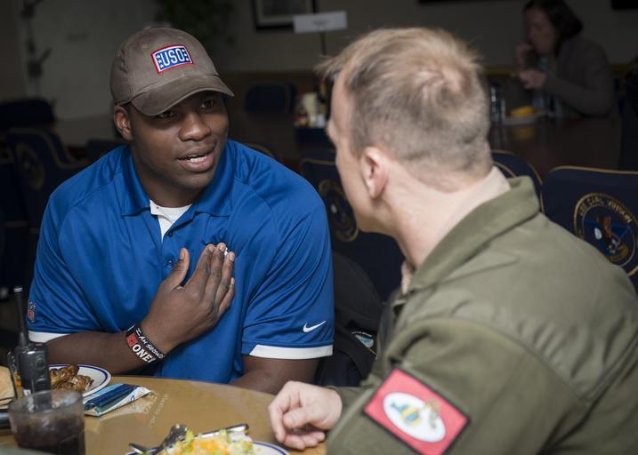 Keywords: Operation Inherent Resolve 150305-N-WD464-012.jpg en 150305-N-WD464-012 ARABIAN GULF Dwayne Allen tight end for the Minneapolis Colts eats lunch with officers in the wardroom lounge aboard aircraft carrier USS Carl Vinson as part of a United Service Organization visit Carl Vinson is currently deployed to the area supporting maritime security operations strike operations in Iraq and Syria as directed and theater security cooperation efforts in the 5th Fleet area of operations 2015-03-05 MAR 5 2015 https //www dvidshub net/image/1801665 150305-N-WD464-012 2015-03-06 19 47 USS CARL VINSON CVN 70 ARABIAN GULF AT SEA PD-USGov-Military-Navy USS Carl Vinson CVN-70 Images from DoD uploaded by Fæ