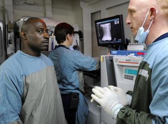 | Keywords: Operation Unified Response 100120-N-DU164-058.jpg en Senior Chief Hospital Corpsman Huben Phillips left listens as Hospital Corpsman 1st Class Richard Rock updates him in the X-ray room on the status of the injured Haitians being treated in the multi-purpose amphibious assault ship USS Bataan's flight deck triage before giving the OK to transfer them to medical triage or other medical spaces for further treatment and evaluation Throughout the course of the day the medical crew aboard Bataan received and treated 19 injured Haitians during a mass medical evacuation from various areas around Port-au-Prince Bataan along with amphibious dock landing ships USS Fort McHenry USS Gunston Hall and USS Carter Hall are participating in Operation Unified Response and will provide military support capabilities to civil authorities to help stabilize and improve the situation in Haiti in the wake of the 7 0 magnitude earthquake that hit the area Jan 12 Unit Defense Imagery Management Operations Center DVIDS Tags heritage; deployed; USS Bataan; Bataan; fast; united states; tradition; america; freedom; Kristopher Wilson; commerce; DIMOC; navy; Sailors; earthquake; military; Haiti; U S Navy; liberty; war fighters; CHINFO; protect; worldwide; sea lanes; on watch; war fighting; flexible; preserve peace; deter aggression; defend freedom; operate forward; be ready; war fighting first; NMCS; navy media content service; DVIDS Bulk Import 2010-01-20 LHD 5 https //www dvidshub net/image/1320119/operation-unified-response 100120-N-DU164-058 2014-05-08 19 58 BAIE DEGRAND GOAVE HT PD-USGov-Military-Navy USS Carter Hall LSD-50 Operation Unified Response Images from DoD uploaded by Fæ |