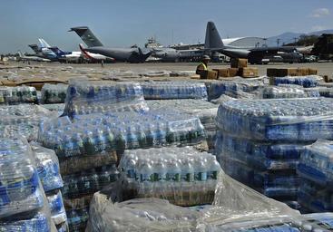 Keywords: Operation Unified Response DVIDS245910.jpg en Pallets of humanitarian aid and bottled water are lined up in a staging area just off the tarmac of Aerodome de Jacmel an airport in Port-au-Prince while cargo planes from various nations sit at the airport's terminal facility The multi-purpose amphibious assault ship USS Bataan and the amphibious dock landing ships USS Fort McHenry USS Gunston Hall and USS Carter Hall are participating in Operation Unified Response as the Bataan Amphibious Relief Mission by providing military support capabilities to civil authorities to help stabilize and improve the situation in Haiti in the aftermath of a 7 0 magnitude earthquake on Jan 12 2010-01-28 https //www dvidshub net/image/245910 100128-N-+++++-098 2010-01-30 01 13 PORT-AU-PRINCE HT PD-USGov-Military-Navy USS Carter Hall LSD-50 Operation Unified Response Images from DoD uploaded by Fæ |