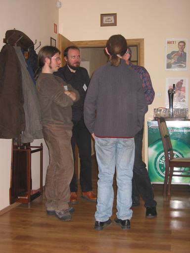 Keywords: Oplatek kuluarowa dyskusja.JPG Wikimedia Polska meetup December 2005 Dyskusje kuluarowe 2006-12-10 own assumed Polimerek Wikimedia meetups in Poland