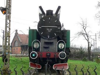 Keywords: Opole Dworzec.jpg pl Opole - Lokomotywa TKt48-127 ustawiona jako pomnik przed dworcem głównym de Dampflok vor`m Hauptbahnhof sel made 2006-04-17 Chris516 Main Train Station in Opole Monuments featuring locomotives in Poland Opole
