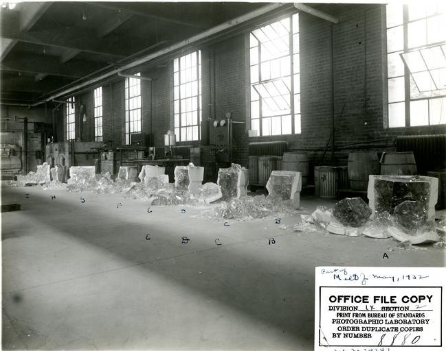 | Keywords: OpticalGlass 015.jpg A 777 LBC off color B 776 1 6 2 flint C 775 1 6 5 flint note dark live __ pot bottom corrosion on ___ D 771 E 772 1 6 2 flint F 774 1 6 5 flint G probably B S C H probably B S C I B S C National Institute of Standards and Technology 5/1/1932 National Institute of Standards and Technology PD-USGov-NIST PD-USGov National Bureau of Standards National Institute of Standards and Technology Glass | ||||