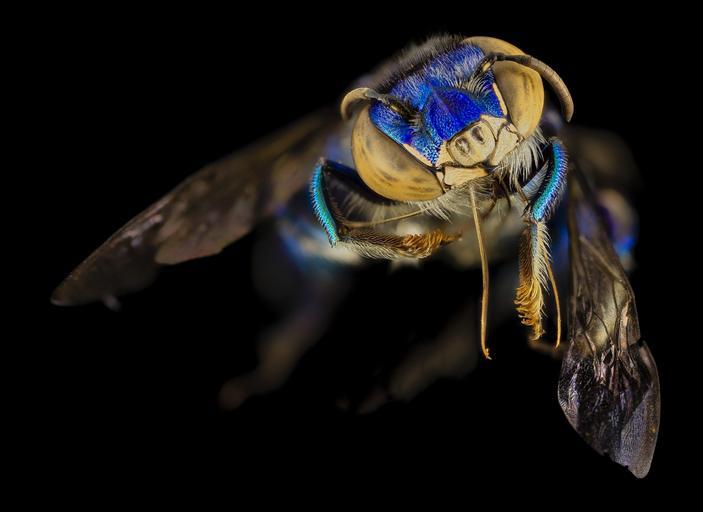 Keywords: bug bugs bee bees pollinator pollinators animal animals animalia arthropod arthropods arthropoda insect insects insecta hymenoptera aculeata anthophila apoidea apidae apinae orchid bee orchidbee orchid bees orchidbees euglossa blue blue-green bluegreen metallic iridescent taxonomy:genus=euglossa droege biml usgs usgsbiml guyana jungle rainforest stackshot zerene stacker zerenestacker black background macro depth of field surreal Euglossa....the orchid bees, swanky glintlings of the New World tropical forests. The males gather fragrances produced by orchids who are then pollinated by the infatuations of these males. The males ultimately transfer the fragrances to the modified hind legs where they are stored in the small slot like area you can see in these picture surrounded by black hairs. This one from our joint trip with the Smithsonian Ant Heads to the interior of Guyana rainforests. More species being discovered each year. Canon Mark II 5D, Zerene Stacker, Stackshot Sled, 65mm Canon MP-E 1-5X macro lens, Twin Macro Flash in Styrofoam Cooler, F5.0, ISO 100, Shutter Speed 200, link to a .pdf of our set up is located in our profile Euglossa....the orchid bees, swanky glintlings of the New World tropical forests. The males gather fragrances produced by orchids who are then pollinated by the infatuations of these males. The males ultimately transfer the fragrances to the modified hind legs where they are stored in the small slot like area you can see in these picture surrounded by black hairs. This one from our joint trip with the Smithsonian Ant Heads to the interior of Guyana rainforests. More species being discovered each year. Canon Mark II 5D, Zerene Stacker, Stackshot Sled, 65mm Canon MP-E 1-5X macro lens, Twin Macro Flash in Styrofoam Cooler, F5.0, ISO 100, Shutter Speed 200, link to a .pdf of our set up is located in our profile