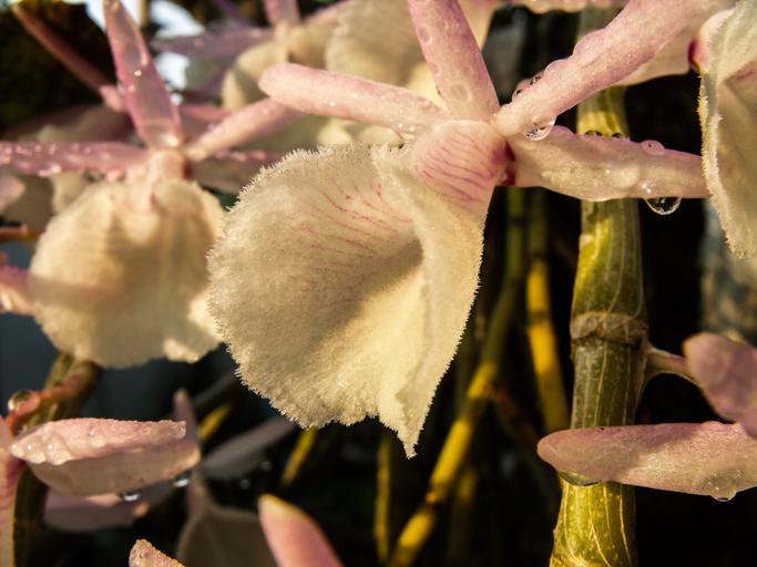 Keywords: orchid blossom bloom flower white pink close