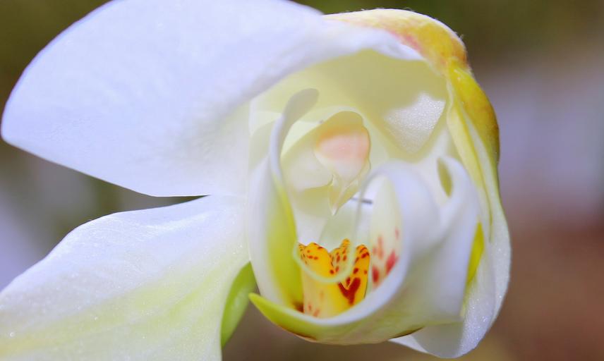 Keywords: orchid orchid greenhouse orchidaceae blossom bloom white yellow bloom open bud calyx