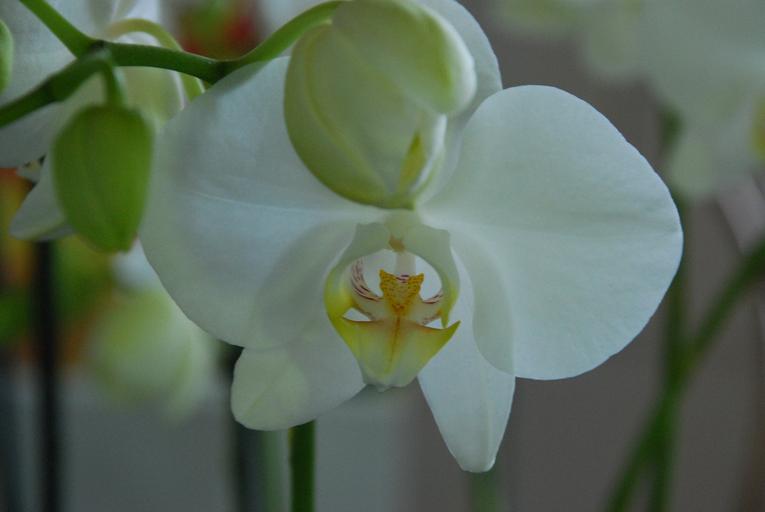 Keywords: orchid white flower plant blossom bloom nature close houseplant bud bloom yellow white