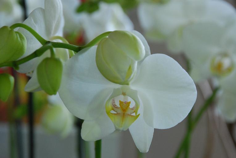 Keywords: orchid white flower plant blossom bloom nature close houseplant bud bloom yellow white