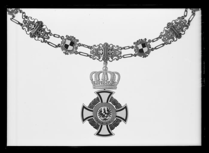 | Keywords: Ordenskedja för storkomtur av kungliga preussiska Hohenzollern-husorden - Livrustkammaren - 35743.tif LSH artwork sv Kedja av silver och emalj sammansatt av sexton länkar förenade med dubbla kedjor Fyra länkar i form av kartuscher belagda med guldsköldar kvadrerade svart och vitt Zollern Fyra länkar med likadana kartuscher belagda med vapensköldar i guldfält ett svart lejon röd-vitrutad bård Nürnberg Åtta länkar i form av avlånga silverkartuscher därpå blåemaljerade sköldar med guldspira Arvkammarherrespiran vid sköldarnas sidor rankdekor av guld På baksidan av länk med spira ett rektangulärt låshus på kedjan intill en fjäder med blomformigt fingergrepp av silver På baksidan av motstående spirlänk stämplat H S vid nederkanten en ring i vilken tecknet nr 1530 hänger original caption silver - enamel Färg svart vit röd blå material emalj g 130 size mm 20 610 LRK Gustaf V av Sverige Minnesutställning över Konung Gustaf V 1951-1952 place of origin original filename LN_B12114_014994 38094 inventory number LRK 1529 35743 CC0 Ordenskedja för storkomtur av kungliga preussiska Hohenzollern-husorden - Livrustkammaren - 35743-negative tif <gallery caption Related objects > File Klenod Hohenzollern-Husorden - Livrustkammaren - 45330 tif LRK 1530 File Hederskors I kl furstliga Hohenzollern-husorden - Livrustkammaren - 10027 tif LRK 1532 File Kraschan möjligen för storkomtur av kungliga preussiska Hohenzollern-husorden - Livrustkammaren - 69952 tif LRK 1531 </gallery> Orders of Sweden Media contributed by LSH 2016-12 |