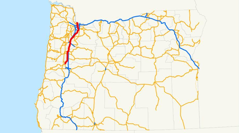 Keywords: Oregon Route 99E.svg This is a map of Oregon Route 99E Email me if you would like a copy of the GIS data I created for the highways 2008-04-11 own assumed NE2 Oregon Route 99E Maps of highway routes in Oregon 099E