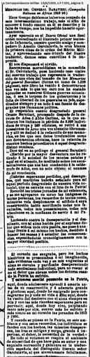 Keywords: Oreste-Baratieri-Memorie-d-Africa-1903.jpg it Recensione sulla stampa spagnola del libro Memorie d'Africa di Oreste Baratieri pubblicato dai Fratelli Bocca nel 1898 - tradotto in spagnolo nel 1903 da Amelio Garcialavin 1903 La Correspondencia militar 13 4 1903 pag 3 La Correspondencia militar other versions Memorias del general Baratieri Campaña italiana en Africa 1892 96 Hace tiempo debiamos habernos ocupado de este interesantisimo trabajo mas el afan de conocer a fondo cuanto en el se describe y la falta de tiempo nos ha impedido hacerlo oportunamente Ayer apareciò en el Diario Oficial una Real orden concediendo al ilustrado primer teniente de Infanteria nuestro querido amigo y compañero D Amelio Garcialavin la cruz blanca de primera clase de la orden del Merito Militar y aprovechando este triunfo del ilustre traductor damos estas cuartillas a la imprenta El nos dispenserà el olvido Recompensa merecidisima es la concedida al Sr Garcialavin pues haciendo caso omiso del enorme trabajo que representa la traduccion de una obra del tamaño de las Memorias del general Baratieri forma un tomo de 1 000 paginas este libro ha venido a demostrarnos una vez mas lo que tan caro nos ha costado aprender en nuetras ultimas guerras coloniales o sea la torpeza de los gobernantes y la falta de libertad de los generales en jefe superditados siempre y en todo a esa fuente de desgracias que llamamos politica El respetable cuanto desgraciado general Oreste Baratieri procesado despues de la derrota de Adea o Abba Garima en la que sufrieron los italianos la perdida de 3 998 individuos de tropa y 260 oficiales se retirò a sus posesiones de Arco una vez absuelto libremente y allì se dedicò a la redaccion de sus memorias en las que con datos irrefutables como son documentos oficiales hace la relacion de cuantos hechos procedieron a aquel desgraciadisimo combate Dice asì en su prologo el general Baratieri Herido por la mayor desventura me he retirado a la soledad de los montes natales y aquì en el silencio he meditado sobre los acontecimientos que nos han conducido a la catastrofe de Adua con un solo objeto el examen de mi conciencia Cuantas esperanzas perdidas que desengaños que martieries habran señalado para mi aquel periodo desgraciado de nuestra vida colonial que se cerraba con el luto de la Patria Recorderè las tristes jornadas de mi existencia y se me agruparon entorno las imagenes de tantas personas los recuerdos de tantas cosas mientre veia desplomarse el edificio a cuya construccion habia sacrificado todas mis facultades todos mis pensamientos todas mis affecciones en la confianza de servir a mi Patria Luchando contra la desesperacion y el desaliento con el alma herida por el supremo dolor que sofoca toda otra pasion me puse a analizar frente a mi mismo los hechos decidido a buscar las causas y a estudiar las consecuencias Exponiendolas cronologicamente con la mayor claridad posible ¦ ¦ ¦ ¦ ¦ ¦ ¦ ¦ ¦ ¦ ¦ ¦ ¦ ¦ ¦ ¦ ¦ ¦ ¦ ¦ ¦ ¦ ¦ ¦ ¦ ¦ ¦ ¦ ¦ ¦ ¦ ¦ ¦ ¦ ¦ ¦ ¦ ¦ ¦ ¦ ¦ ¦ ¦ ¦ ¦ ¦ ¦ El corazon me sangraba pero los hechos historicos se presentaban a mi imaginacion mas evidentes cada vez y en mis angustias el alma se elevaba y purificaba desapareciendo todo sentimiento individual para no restar si no el dolor que abraza todos los dolores cuando la Patria ha sufrido Y entonces escribì pensando en la Patria Aquì donde adolescente aprendì a amarla antes de su resureccion y a aderarla grande y gloriosa; aquì donde he emigrado para consagrarme yo y toda mi vida a Ella; aquì donde he vuelto del destierro con el alma siempre en ella y con las mas risueñas esperanzas para su porvenir; aquì donde hoy vivo palpitando tanto mas por ella cuanto mas he sufrido y mas siento en mi corazon las jornadas de 1859 y 1880 Y cuando se piensa en la Patria en este ambiente y con estos recuerdos los individuos se funden con los hechos las miserias desaparecen las iras se mitigan y surge grande y imperioso el deber la necesidad de la verdad En todo el volumen se respira el ambiente de sinceridad de que hace gala su autor y una exquisita correcion y galanura en la traduccion española del distiguido literato senor Garcialavin al que sinceramente felicitamos Traduzione dallo spagnolo Memorie del generale Baratieri Campagna italiana in Africa 1892 96 Da tempo avremmo dovuto occuparci di questo interessantissimo lavoro ma il desiderio di conoscere a fondo quanto in esso si racconta e la mancanza di tempo ci ha impedito di farlo in modo adeguato Ieri apparve sul Diario Oficial un ordine reale che concede all ™illustre primo tenente di fanteria nostro caro amico e collega Amelio Garcialavin la croce bianca al merito militare e approfittando di questo successo dell ™illustre traduttore diamo queste righe alla stampa Questo ci scuserà la dimenticanza Ricompensa meritatissima quella concessa al sig Garcialavin considerando l ™enorme lavoro che comporta la traduzione di un ™opera delle dimensioni delle Memorie del general Baratieri consistente in un volume di 1 000 pagine questo libro torna a dimostrarci una volta di più quello che tanto caro ci è costato imparare nelle nostre ultime guerre coloniali ossia che la pigrizia dei governanti e la mancanza di libertà d ™azione dei generali in capo sempre e in tutto ha origine in quella fonte di disgrazie che chiamiamo politica Il rispettabile quanto sfortunato generale Oreste Baratieri processato dopo la disfatta di Adua o Abba Garima in cui gli italiani patirono una perdita di 3 998 soldati semplici e 260 ufficiali si ritirò nei suoi possedimenti di Arco dopo essere stato assolto e lì si dedicò alla stesura delle sue memorie dove per mezzo di dati irrefutabili come sono i documenti ufficiali fa la relazione di quanti fatti portarono a quel disgraziatissimo combattimento Dice così nel suo prologo il generale Baratieri Ferito dalla maggior sventura mi sono ritirato nella solitudine dei monti natali e qui nel silen