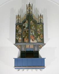 | Keywords: Orgel van gepolychromeerd eikenhout uit de Nederlands Hervormde Kerk te Scheemda Rijksmuseum BK-NM-8184.jpeg Artwork Creator Johannes Emedensis LangSwitch Organ Orgel Ucfirst Anonymous i18n/painting LangSwitch Organ with oak case and painted shutters from the Dutch Reformed Church in Scheemda The pipes are divided into seven groups On the inner right shutter are depicted The Nativity and The Adoration of the Shepherds On the inner left shutter is depicted The Adoration of the Magi The exterior of the shutters shows The Tree of Jesse These paintings were formerly attributed as 'manner of Jan Swart van Groningen' Orgel van gepolychromeerd eikenhout uit de Nederlands Hervormde Kerk te Scheemda De pijpenbundels zijn in zeven groepen verdeeld Op de rechter deur aan de binnenzijde zijn voorstellingeen van De Geboorte en De Aanbidding der Herders aangebracht Op de linkerdeur aan de binnenzijde De Aanbidding der Koningen De buitenzijde is beschilderd met De boom van Jesse Deze schildering waren in het verleden toegeschreven als 'trant van Jan Swart van Groningen' ~ 1526 oak and oil oak panel cm 645 300 Institution Rijksmuseum Amsterdam BK-NM-8184 Johannes Emedensis and Germany LangSwitch Organ from the Dutch Reformed Church at Scheemda with depiction of Jesse Tree Orgel van gepolychromeerd eikenhout uit de Nederlands Hervormde Kerk te Scheemda ~ 1526 wood oak oil 29671 Anonymous Northern Netherlands Orgel met beschilderde luiken century 16 1500-1599 Oil on panel orgel-van-gepolychromeerd-eikenhout-uit-de-nederlands-hervormde-kerk-te-scheemda 100007921 Johannis Emedensis Orgel van gepolychromeerd eikenhout uit de Nederlands Hervormde Kerk te Scheemda Other date ~ 1526 oak object history by 1874 Nederlands Hervormde Kerk Scheemda by 1896 J Verwer Leeuwarden ProvenanceEvent 1896 purchase LangSwitch das the le het Rijksmuseum Amsterdam Amsterdam exhibition history credit line LangSwitch Purchased by the Rijksmuseum Amsterdam with support of the Aangekocht door het Rijksmuseum Amsterdam met steun van de Vereniging Rembrandt Johannes Emedensis signature unknown ~ accession number BK-NM-8184 place of creation Northern Netherlands / i18n/or Germany www rijksmuseum nl http //www rijksmuseum nl Home http //www rijksmuseum nl/collectie/BK-NM-8184 Info Orgel thans opgesteld in het Rijksmuseum - Scheemda - 20195361 - RCE jpg Photo dating from the early 20th century PD-US PD-old Data and photography rights All data and all images made available through the API are either in the public domain or are subject to a CC0 license https //www rijksmuseum nl/en/api/terms-and-conditions-of-use cc-zero Uploaded with GWToolset Orgel van gepolychromeerd eikenhout uit de Nederlands Hervormde Kerk te Scheemda Rijksmuseum BK-NM-8184 http //www rijksmuseum nl/media/assets/BK-NM-8184 DEFAULTSORT Anonymous 1526 Images uploaded by Fæ Images from the Rijksmuseum Dutch Renaissance paintings in the Rijksmuseum Amsterdam Anonymous 1526 German paintings in the Rijksmuseum Amsterdam Anonymous 1526 Johannes Emedensis 1526 Furniture in the Rijksmuseum Amsterdam Rijksmuseum Amsterdam in the 2000s 2000 Rijksmuseum Amsterdam - Great Hall Gothic organs Nederlands Hervormde Kerk Scheemda |