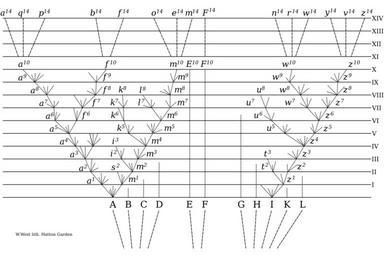 Keywords: Origin of Species.svg The only illustration in Charles Darwin's 1859 On the Origin of Species showing the divergence of species Caption Diagram of Divergence of Taxa Own work by uploader based on File On the Origin of Species diagram PNG Illustration by Charles Darwin SVG file by Inductiveload 2009-02-05 The Origin of Species Phylogenetic tree of life Tree diagrams |